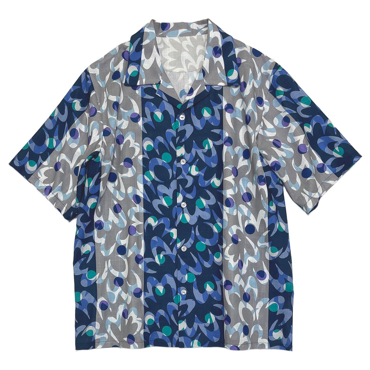 普段は浴衣として使用されている生地に、このコラボのためにアレンジしたcameioの定番柄をプリントし、オープンカラーシャツにに仕立てました。